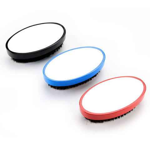 للبيع بالجملة فرشاة بيضاوية للشعر الناعم مع مرآة مشط شعر أسود/أحمر/أزرق مقبض خشبي خنزير شعيرات للعناية باللحية